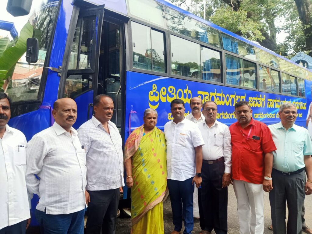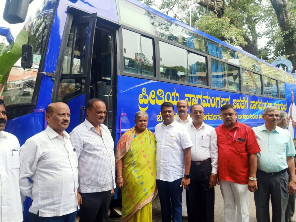 ನಾಗಮಂಗಲದಿಂದ ಬೆಂಗಳೂರಿಗೆ ಉಚಿತ ಬಸ್ ಸೇವೆಗೆ ಚಾಲನೆ : ತಾಯಿ ಆಸೆ ಈಡೇರಿಸಲು ಮುಂದಾಗ ಮಂಡ್ಯದ ಯುವ ಉದ್ಯಮಿ